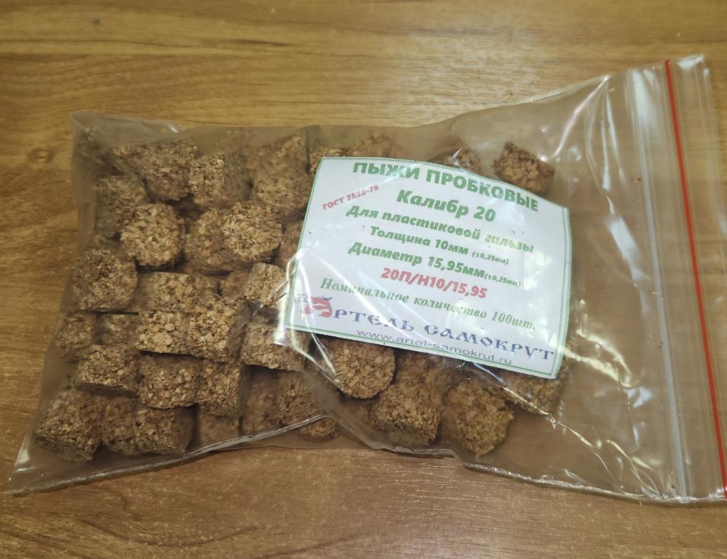 Пыж пробковый 20 калибр толщина 10мм (100шт/уп) для пластиковой гильзы